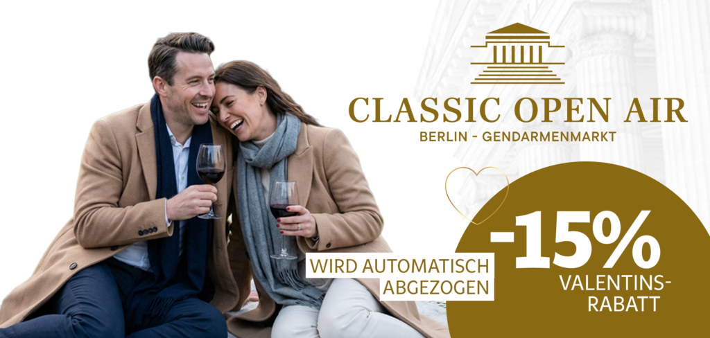 Exklusive Informationen zum Vorverkauf und Highlights am Gendarmenmarkt, Verlosungen und vieles mehr. Melden Sie sich jetzt für den Newsletter des Classic Open Air an und erhalten Sie alle Neuigkeiten zuerst!